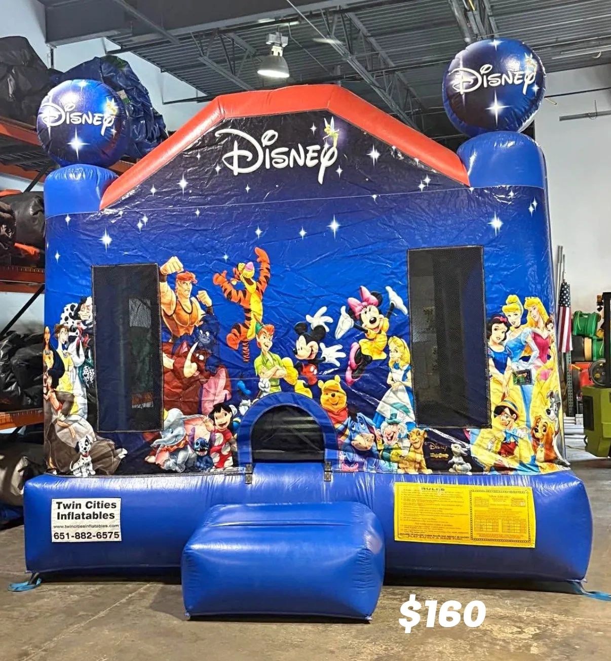 This beautiful commercial grade bounce house features many iconic Disney characters and is fully enclosed for maximum comfort. It’s perfect for several kids and even adults.